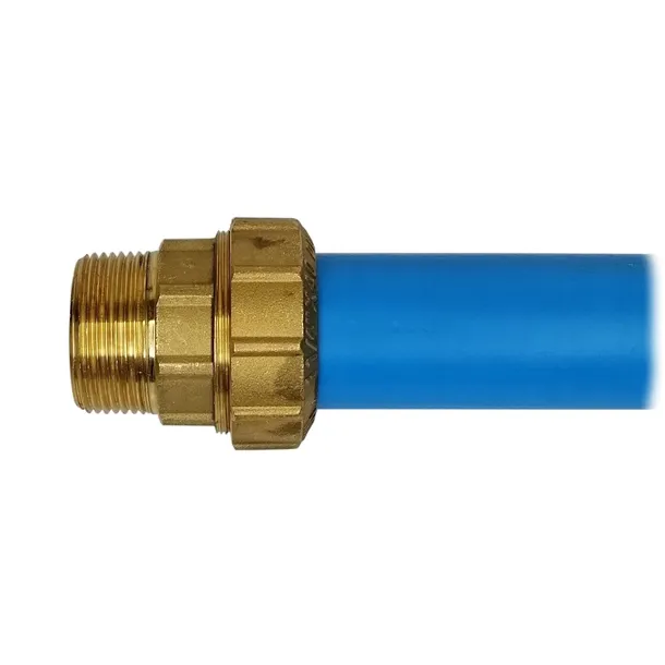 Złącze mosiężne : PROSTE VX 015 zakończonej gwintem zewnętrznym.Producent ITAP ( Włochy). Złączka służy do trwałego i mocnego połączenia rury PE z innym elementem gwintowanym ( np. pompa wodna lub kolektor wodociągowy).
