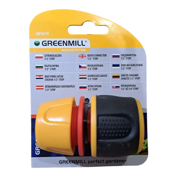 Szybkozłączka 1/2” STOP to niezawodne narzędzie, które umożliwia szybkie połączenie węży ogrodowych z urządzeniami wodnymi, jednocześnie wyposażona w funkcję zatrzymania przepływu wody.