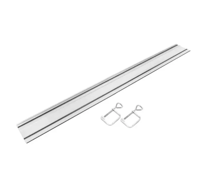 Wysokiej jakości aluminiowa listwa wyposażona jest w teflonowe ślizgi pomagające w równomiernym prowadzeniu urządzenia oraz specjalne taśmy antypoślizgowe zamocowane od spodu listwy, co zdecydowanie podnosi komfort i bezpieczeństwo pracy. Dodatkowo na całej długości listwa posiada gumową wkładkę przeciwodpryskową, która przy pierwszym użyciu samoczynnie dopasuje się do używanego narzędzia. Istnieje możliwość przymocowania szyny do obrabianej powierzchni za pomocą dedykowanych zacisków, co pozwala użytkownikowi skupić się wyłącznie na prowadzeniu pilarko-zagłębiarki w celu osiągnięcia zamierzonego efektu cięcia. Dzięki specjalnie wyprofilowanym rowkom, zaciski nie przeszkadzają w trakcie pracy.