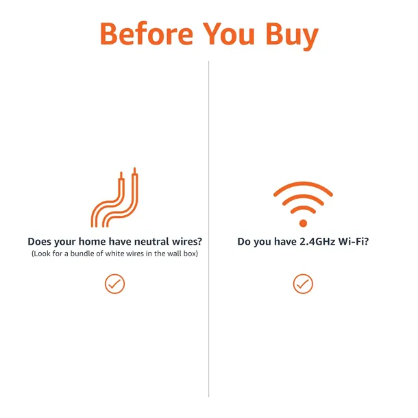 - Wymaga obecności przewodów neutralnych oraz sieci Wi-Fi 2,4 GHz.
