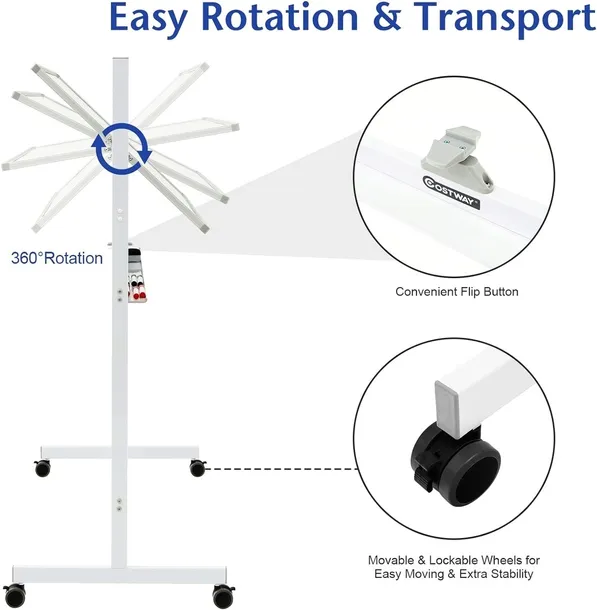 Łatwy obracania i transport: tablicę można obrócić o 360° za naciśnięciem przycisku. Co więcej, 4 kółka są nie tylko ruchome, ale także blokowane, co ułatwia przemieszczanie i zapewnia dodatkową stabilność.