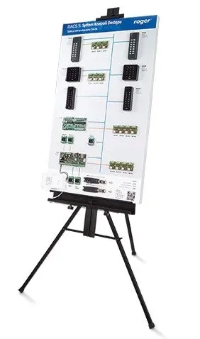 Tablica demonstracyjno-szkoleniowa dla systemu kontroli dostępu RACS 5. Na tablicy o wymiarach 100x60x3cm umieszczono kontroler MC16, zestaw czytników MCT oraz ekspanderów MCX i połączono je w przykładowy sieciowy system kontroli dostępu. Tablica DB-6 może być użyta do szkoleń instalatorów i projektantów systemów KD, a także do prezentacji możliwości systemu RACS 5 u użytkowników końcowych.Tablica ewaluacyjna systemu RACS 5 Stojak widoczny na zdjęciu nie wchodzi w skład DB-6A-PL.
