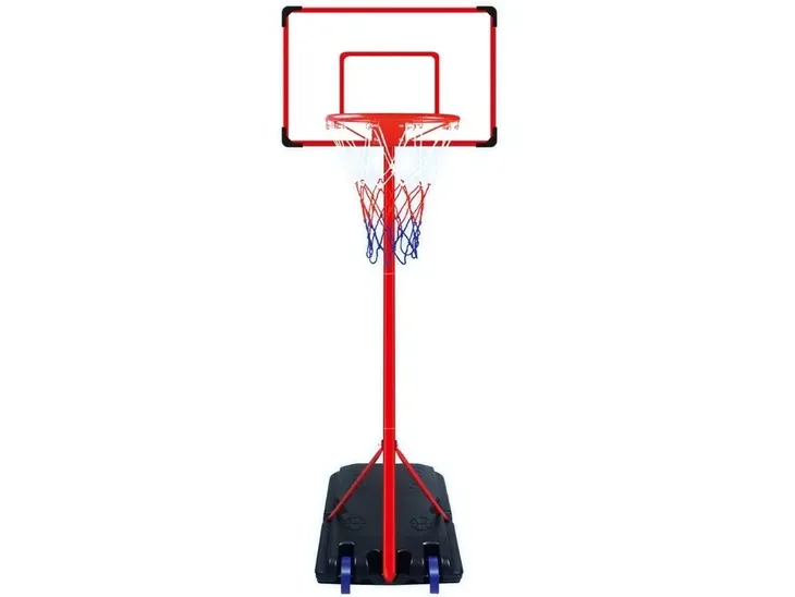 Praktyczny stojak z tablicą do gry w koszykówkę z piłką i pompką w zestawie, gwarantuje rewelacyjną zabawę na świeżym powietrzu. Całość sprawdzi się na szkolnym boisku jak w ogrodzie, czy na placu zabaw. Dzięki mocnej podstawie na kółkach oraz słupie osadzonym w podstawie, gra w kosza będzie prawdziwą przyjemnością dla wszystkich fanów koszykówki. Dzięki zamontowanym kółkom w podstawie będzie można w łatwy sposób przemieścić cały zestaw. Dodatkowo łatwy i szybki montaż oraz regulowana wysokość kosza gwarantują pełny komfort użytkowania. Gra w koszykówkę rozwija wyobraźnię, uczy pracy w grupie, współdziałania z innymi, poprawia sprawność fizyczną, koordynację ruchową i celność. Zestaw do koszykówki pozwoli młodemu adeptowi wcielając się w największe gwiazdy NBA urządzić niezwykle widowiskowy konkurs wsadów do kosza.
