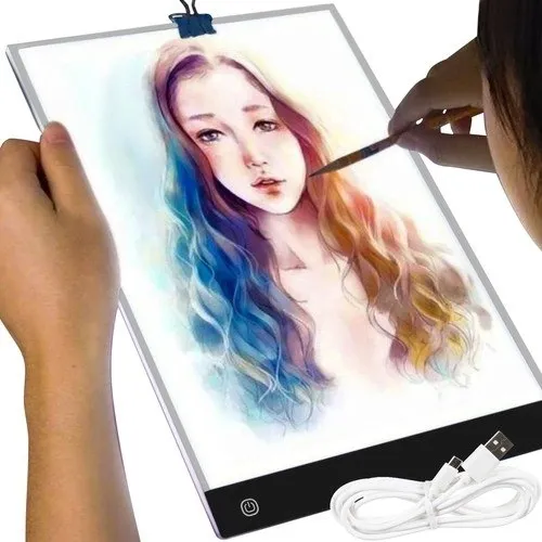 Tablica kreślarska wykonana została z akrylu, jest on wytrzymały i trwały. Równomierne oświetlenie na płycie filtruje szkodliwe promienie chroniąc oczy przed niekorzystnym oświetleniem. Możemy przez wiele godzin korzystać z tablicy bez zmęczenia wzroku. Cała tablica jest dokładnie doświetlona - kopiowanie rysunku wykonywane jest z łatwością, co powoduje że świetnie się na niej pracuje! Tablica zasilana jest przy użyciu przewodu USB - możemy ją podłączyć do komputera, laptopa, power banku lub do wtyczki sieciowej. Zużywa niewiele prądu, więc można wziąć ją w plener i korzystać z niej przy użyciu power banku. Jest lekka, więc transportowanie jej nie stanowi problemu, z łatwością zmieści się do torby.