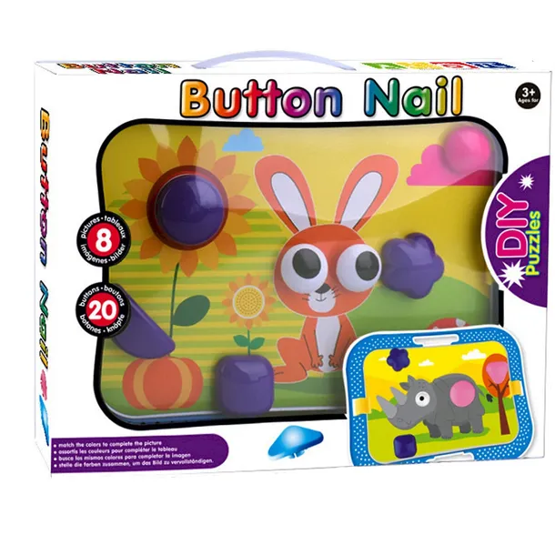 TABLICA PUZZLE GEOMETRYCZNE 1/36 AN84045 Tablica puzzle geometryczne to idealna zabawa dla dzieci powyżej 3 roku życia. Zabawkę stanowią różne obrazki, które dzieci mogą uzupełniać kolorowymi, plastikowymi elementami. Układając puzzle należy umieszczać elementy w wyznaczonych do tego miejscach. Od dziecka zależy, w jakim kształcie i kolorze elementów użyje. Dziecko może wybrać spośród 8 różnych obrazków i 20 kolorowych klocków. Duża, plastikowa tablica jest jednocześnie podstawką dla obrazków, jak i pojemnikiem, w którym mogą być przechowywane kolorowe guziki. Zabawka wykonana jest z trwałego, dobrej jakości plastiku. Żywe kolory i przyjazne kształty zachęcają maluchy do zabawy. Zabawka wspiera: