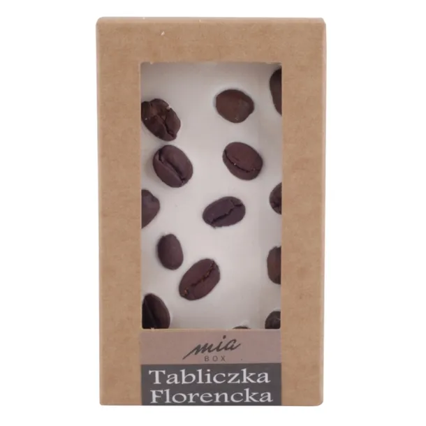 Tabliczka zapakowana są w eleganckie, tekturowe pudełko z okienkiem.