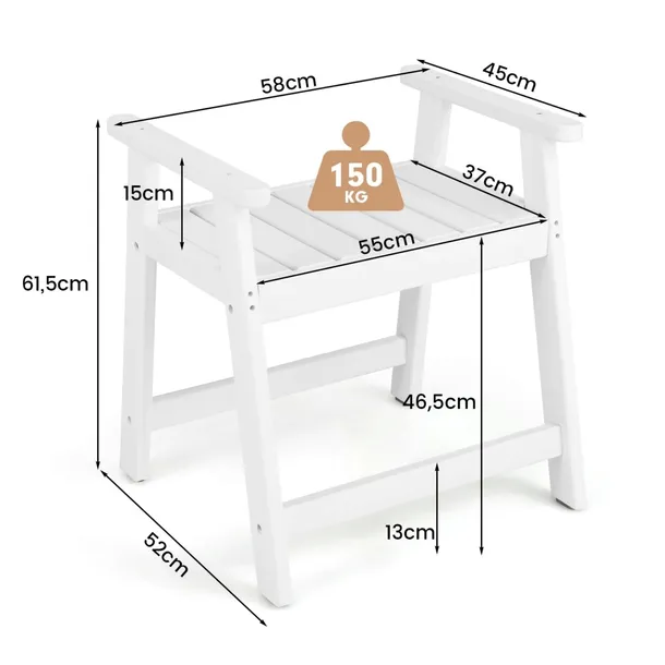 Wodoodporny biały stołek łazienkowy 58 x 52 x 61,5 cm