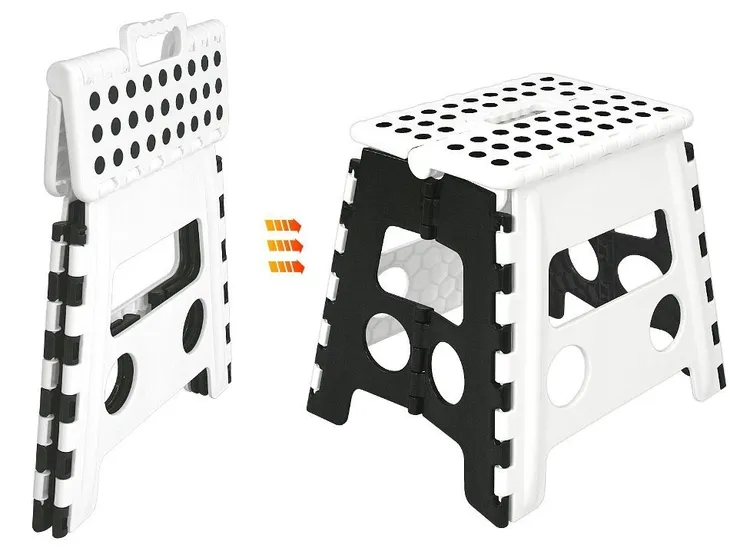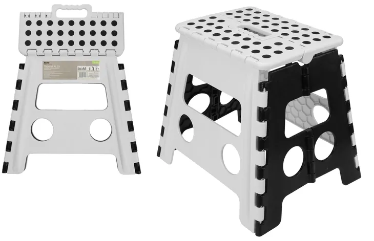 Poręczny,składany taboret firmy Ravi przydatny w każdym gospodarstwie domowym.