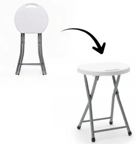 Uniwersalny, składany taboret metalowy, doskonale sprawdzi się w każdy pomieszczeni, takim jak kuchnia, jadalnia, gabinet, recepcja, pensjonat jak i również na balkonie, w ogrodzie, plenerze czy na bankiecie.
