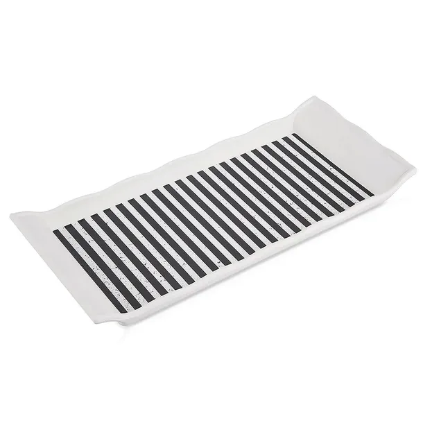 ✅ Solidna i wytrzymała - Wykonana jest z najwyższej jakości tworzywa w białym kolorze. Wewnętrzna część tacy jest w biało - czarne pasy.