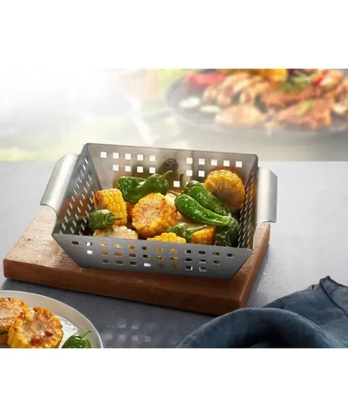 Warzywa, ryby, ziemniaki … wszystko to możesz zrobić na tacy grillowej. Kwadratowe otwory w podstawie i boku ściany umożliwiają optymalną cyrkulację ciepła.