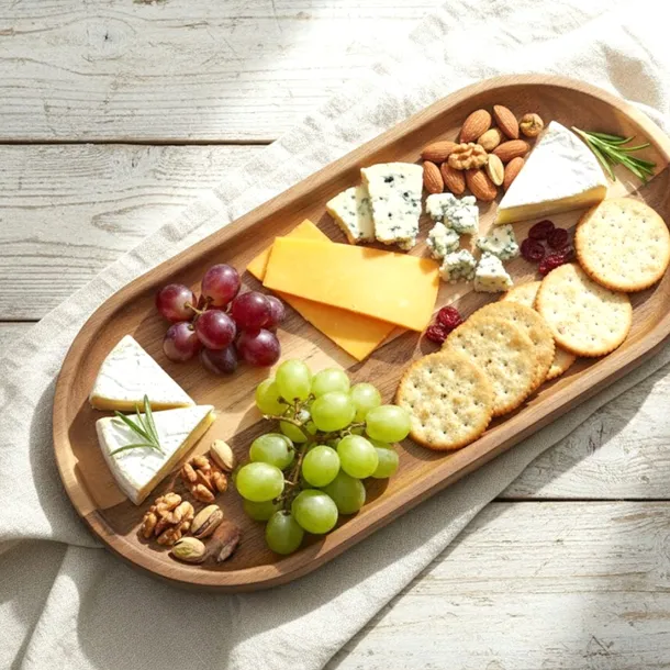Akacjowa taca - deska przydatna w każdej kuchni. Świetnie sprawdzi się również jako deska do serwowania np przekąsek jak sery czy wędliny. Talerz możesz także wykorzystać jako tacę lub podstawę na świece. Zalecane ręczne mycie deski.