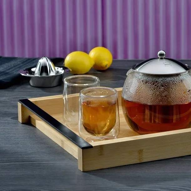 - kela Taca do serwowania Kiril, 54 cm x 34,5 cm, bambus z certyfikatem FSC, czarne metalowe uchwyty, z wypustkami na spodzie, 12597