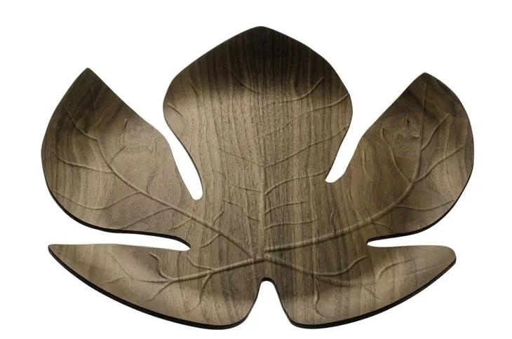 Taca Adamo to taca wykonana z drewna orzecha włoskiego, delikatnie wygięta, w kształcie liścia klonu. Wyraznie zaznaczone "żyłki" na liściu. Delikatne linie dodają tacy elegancji.