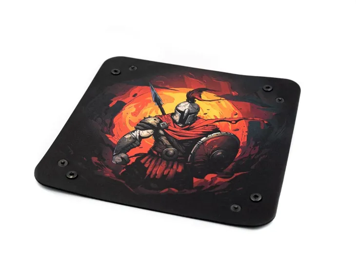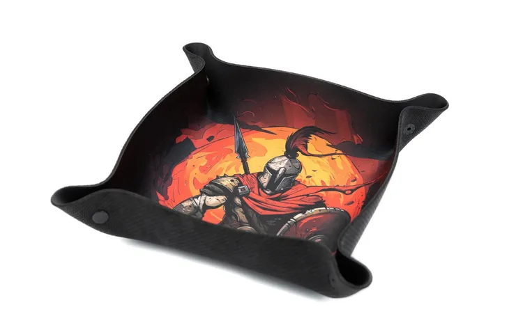 Dice tray jest wykonany z 2 mm gumy, znanej z mat do gier karcianych. W narożnikach znajdują się wytrzymałe, plastikowe napy, dzięki którym możemy płaską matę zmienić w miseczkę do rzucania kośćmi.