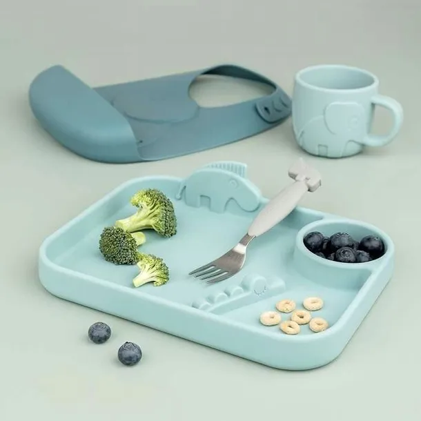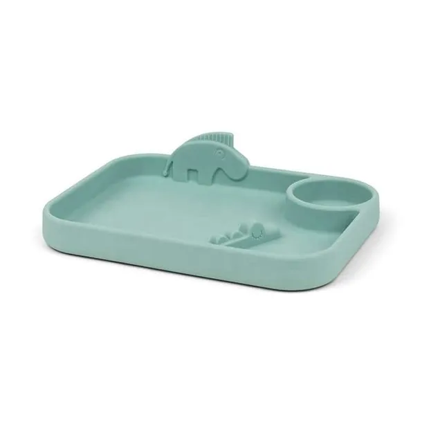 Uroczy talerzyk dla dzieci wykonany jest z silikonu spożywczego, dzięki czemu jest nietłukący i zapewnia antypoślizgowość i łatwość trzymania. Talerz można myć w zmywarce i używać w piekarniku, kuchence mikrofalowej i zamrażarce.