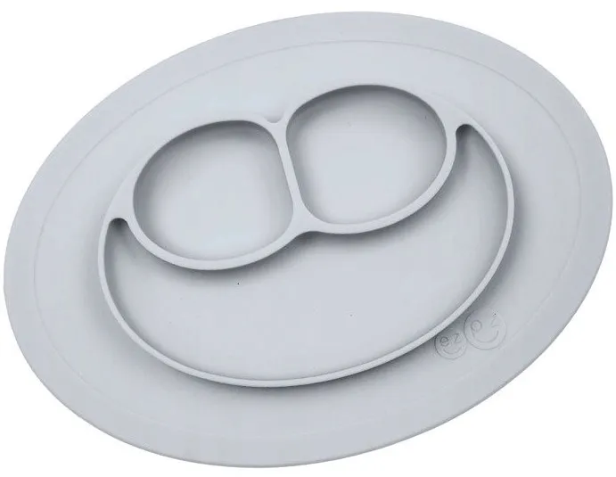 Silikonowy Talerzyk z podkładką mały 2w1 Mini Mat pastelowa szarość EZPZ