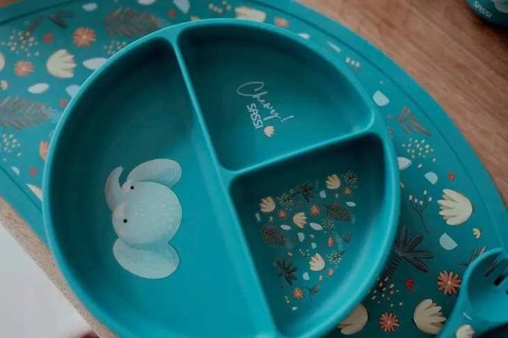 Talerzyk charakteryzuje się miękką i przyjemną w dotyku teksturą, a jego elastyczna, trwała konstrukcja jest odporna na uderzenia i codzienne dziecięce testy. Stabilna podstawa ssąca mocno trzyma się stołu, zapobiegając przesuwaniu się lub upadkowi naczynia – mniej bałaganu i więcej spokoju dla rodzica.