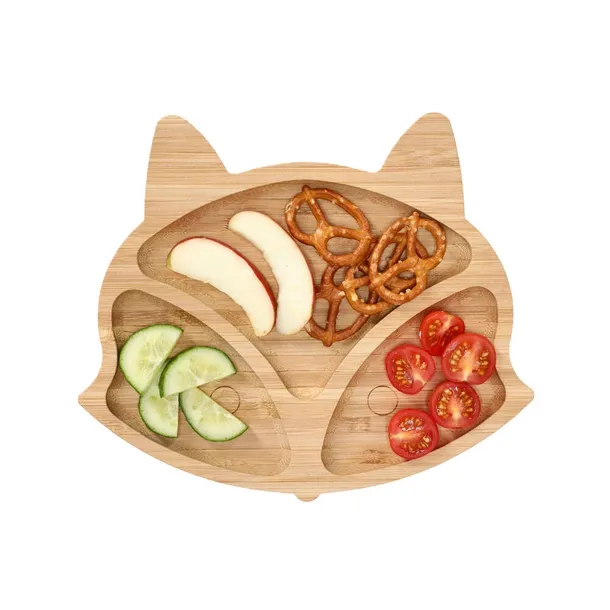 - Praktyczny design: Talerz ma kształt uroczego lisa, który doda uroku każdemu posiłkowi. Wyposażony jest w trzy przegródki, które umożliwiają podanie różnych przekąsek jednocześnie.