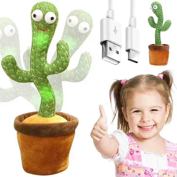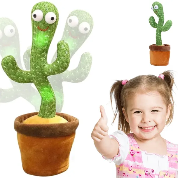Interaktywna zabawka dla dzieci. Kaktus tańczy i śpiewa. Ten wspaniały pluszowy kaktus poprawi każdemu humor, wywołuje uśmiech na twarzy największego smutasa. Kaktus potrafi śpiewać po polski, tańczyć w zabawny sposób, przedrzeźnia oraz ma możliwość nagrywania