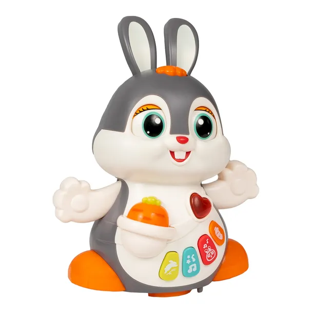 Kolorowe przyciski: Królik ma przyciski w różnych kolorach, które można naciskać, aby aktywować różne funkcje, co rozwija zdolności manualne i uczy rozpoznawania kolorów.Bezpieczeństwo: