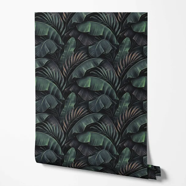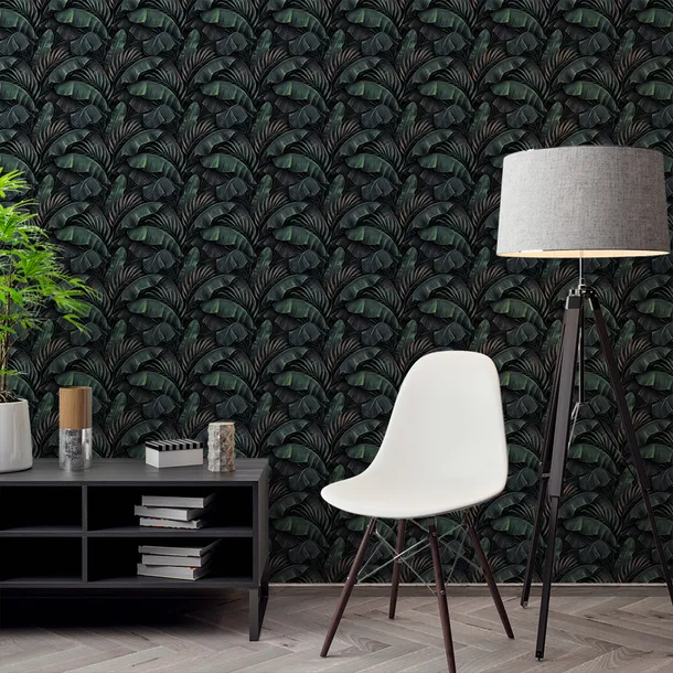 TAPETA NA ŚCIANĘ CIEMNE ZIELONE LIŚCIE DO JADALNI KUCHNI PRZEDPOKOJU