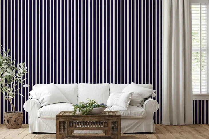 <h2>TAPETA NA ŚCIANĘ GRANATOWE BIAŁE PASKI DO PRZEDPOKOJU BIURA SALONU</h2>