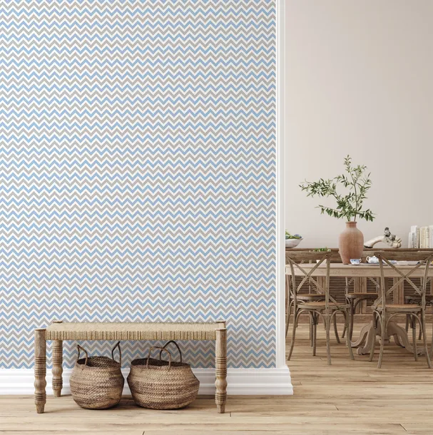 TAPETA NA ŚCIANĘ SZARE NIEBIESKIE BIAŁE ZYGZAKI DO POKOJU NASTOLATKA SALONU