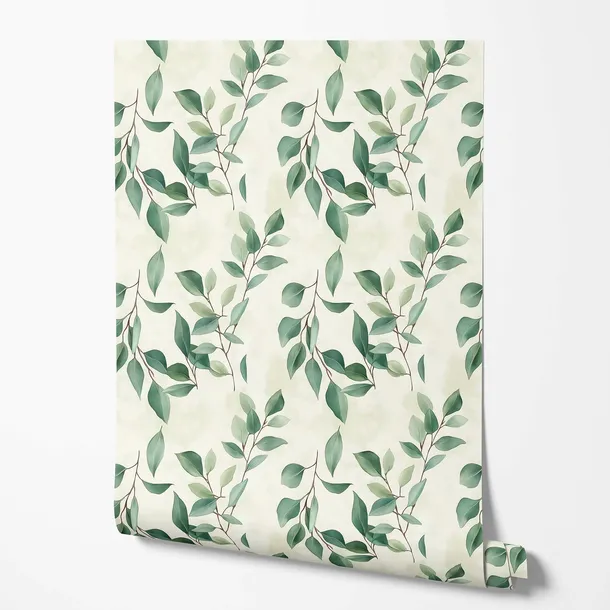 TAPETA NA ŚCIANĘ ZIELONE LIŚCIE ESTETYCZNE ECRU TŁO DO KUCHNI JADALNI BIURA