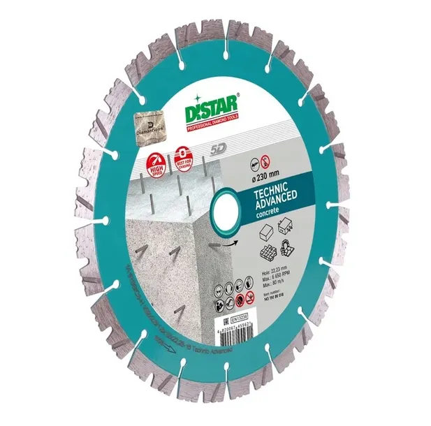 - DISTAR TECHNIC ADVANCED jest to tarcza uniwersalna. Zaprojektowana do wykonywania prac z kostką brukową, betonem i czarnym granitem. Ponadto stosuje się do cegły, betonu zbrojonego, piaskowca, kolorowego granitu. Ze względu na swoją uniwersalność i przystępną cenę zyskała szeroką popularność w zespołach budowlanych.