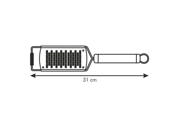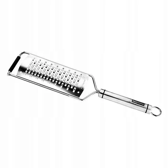 Bardzo ostre i wyjątkowo odporne na zużycie ostrza tarki wykonano ze stali nierdzewnej za pomocą specjalnej technologii, rama z wykończeniem przeciwpoślizgowym gwarantuje bezpieczne użytkowanie. Można myć w zmywarce do naczyń. Uwaga! Ostrza są niebezpieczne, podczas użytkowania tarki należy zachować szczególną ostrożność, przed przechowywaniem tarkę zabezpieczyć osłoną.