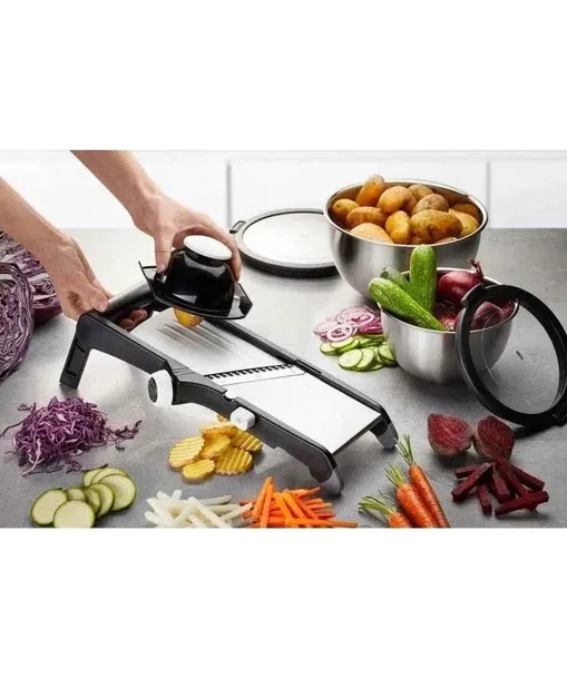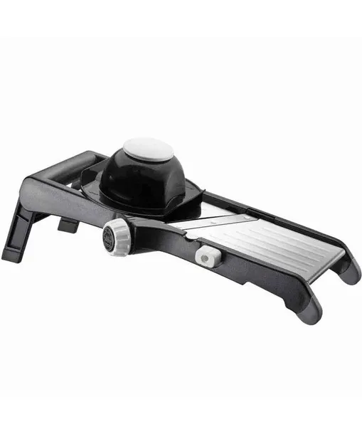 Łatwa regulacja zapewnia grubość cięcia w zakresie od 1 do 9mm...co niezwykle ułatwia pracę urządzenia. W komplecie znajduję się również rączka ułatwiająca cięcie warzyw i owoców a zarazem chroni nasze dłonie.