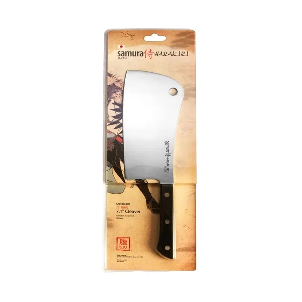 Noże szefa kuchni z linii Harakiri to łączące w sobie funkcjonalność z przyjemną dla oka estetyką modele zaprojektowane przez producenta Samura. Ergonomiczne rękojeści posiadają okładziny z wytrzymałego tworzywa ABS dzięki czemu są nie tylko komfortowe, ale również niezwykle łatwe w utrzymaniu w czystości. Tasak Samura Harakiri to narzędzie do najcięższych prac przy rozbiorze mięsa - umożliwi sprawne cięcie stawów, przepoławianie tusz ptactwa, a nawet dostęp do szpiku kostnego.