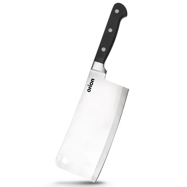 Tasak kuchenny z długim i szerokim ostrzem, solidnie wykonany z wytrzymałych materiałów. Jest niezwykle wygodny w użytkowaniu, dzięki odpowiednio wyprofilowanej rączce. Niezwykle przydatny podczas krojenia dużych kawałków mięsa. W porównaniu do zwykłego noża jest przystosowany do cięcia kości. Znakomicie sprawdzi się dla profesjonalistów, jak również w domowych warunkach. Łatwy w czyszczeniu i użytkowaniu. Nóż nadaje się do mycia w zmywarce do naczyń, zaleca się jednak mycie ręczne a następnie wytarcie do sucha noża po umyciu lub wyjęciu ze zmywarki. Ciekawy, a zarazem klasyczny wygląd sprawia, że nóż wpasuje się do każdej kuchni. Oryginalny produkt czeskiej marki Orion. Wyprodukowano zgodnie z europejskimi standardami.