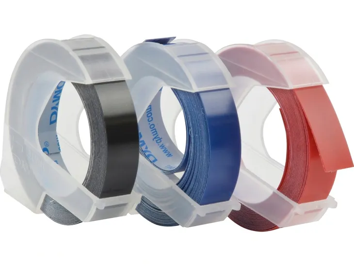 Taśmy DYMO 3D pasują do wytłaczarek DYMO Junior i Omega. Plastikowe wytłaczane etykiety DYMO 3D przylegają do dowolnych gładkich, czystych powierzchni i są odporne na działanie wody, korozji, ścierania i większości środków chemicznych. Niezależnie od tego, czy używasz ich we wnętrzach, czy poza nimi, możesz mieć pewność, że będą trwałe i zostaną na swoim miejscu.