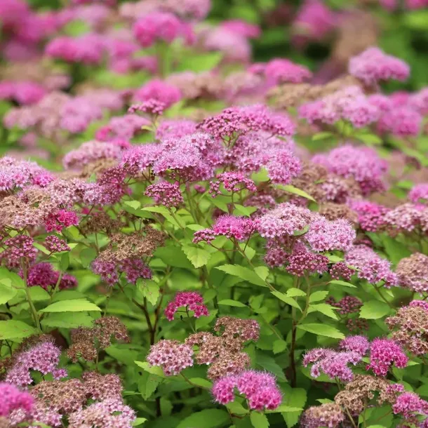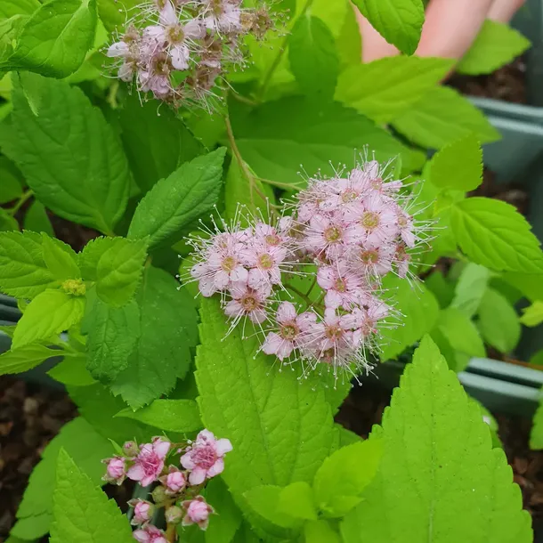 Kwitnienie: Kwitnienie tawuły Goldmound przypada na czerwiec i lipiec.