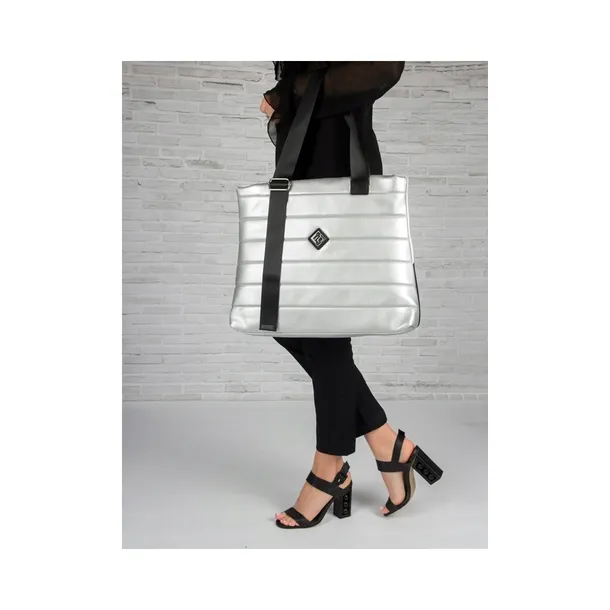 Marka Filippo zyskała sporą popularność wśród kobiet za innowacyjne projekty obuwia damskiego skórzanego bardzo dobrej jakości, a przy tym niewygórowane cenowo. By sprostać wymaganiom stawianym przez coraz większe rzesze klientów, marka Filippo poszerzyła swoją ofertę do toreb damskich oraz nerek. Przedstawiamy dużą torbę damską shopperkę. Wykonana z wysokogatunkowego tworzywa w kolorze srebrnym z przodu oraz białym i czarnym z tyłu. Jednokomorowe wnętrze zapinane jest na zamek błyskawiczny i kryje w środku dodatkowe 3 kieszonki na drobiazgi, w tym 2 otwarte np na telefon i jedną na zamek. Bardzo praktyczna i pojemna, bez trudu pomieści format A4. Długość rączek można regulować - wynosi maksymalnie 80 cm i nadaje torbie charakteru shopperki. Świetny dodatek do bardzo wielu stylizacji i obowiązkowy must have tej wiosny i lata!