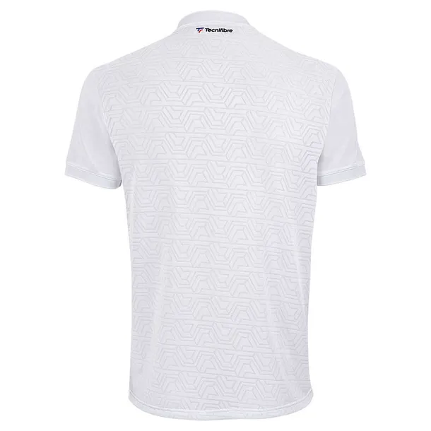 Ta koszulka polo ucieleśnia zarówno tenisowe dziedzictwo, jak i nowoczesność dzięki stójce i białym ściągaczom na rękawach, które nadają jej nowoczesny wygląd. Wykonana z najbardziej technicznego materiału: rozciągliwej, 100% poliestrowej siateczki, która jest w pełni mikroperforowana, aby zapewnić lekkość i optymalną oddychalność. Dla uzyskania stonowanego i eleganckiego projektu, tarcze splotu graficznego są zintegrowane z siatką dzianiny w tonacji koszulki.