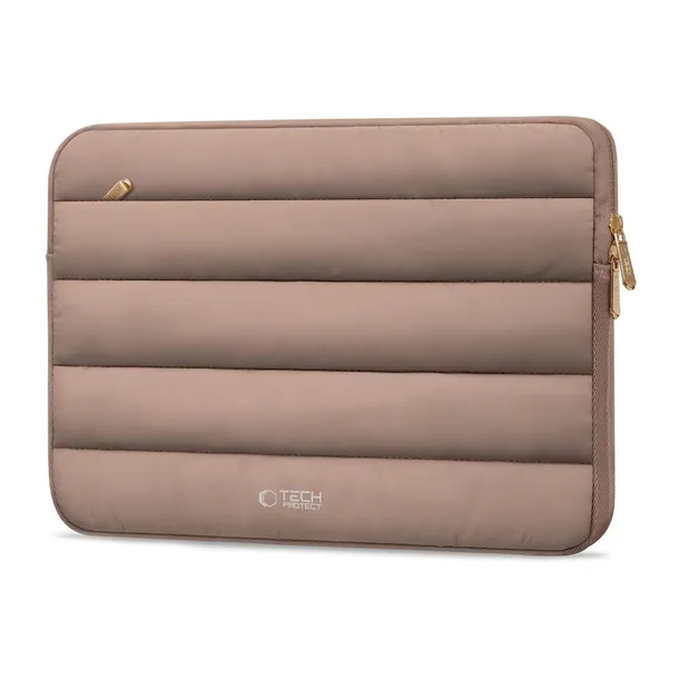 Etui posiada dwie praktyczne kieszenie – główną komorę na laptopa oraz dodatkową, mniejszą kieszeń z przodu, idealną na akcesoria, dokumenty czy drobne przedmioty. Całość uzupełnia eleganckie metalowe zapięcie oraz dyskretne logo Tech-Protect, które podkreślają nowoczesny i minimalistyczny design.