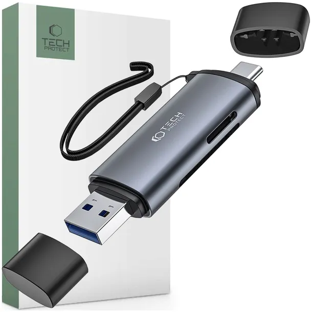 Tech-Protect Ultraboost to praktyczne i wszechstronne urządzenie, które umożliwia łatwe odczytywanie kart pamięci na różnych urządzeniach. Posiada port USB-C oraz USB-A 3.0, co zapewnia szerokie możliwości podłączenia.