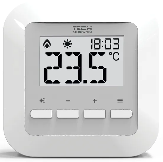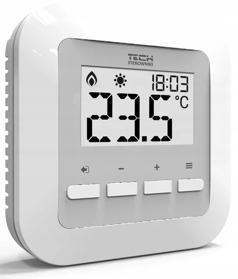 Funkcje: sterowanie temperaturą pokojową, program dzień/noc bezprzewodowa komunikacja, sterowanie według temperatury podłogi