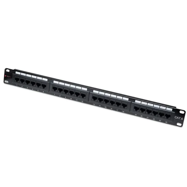 Techly 24 x RJ45 Cat.6. Standardy komunikacyjne: IEEE 802.3, IEEE 802.3ab, IEEE 802.3u, Technologia okablowania: 10/100/1000Base-T(X), Rodzaj interfejsu sieci Ethernet: Fast Ethernet, Gigabit Ethernet. Kolor produktu: Czarny. Certyfikaty zgodności: RoHS. Szerokość produktu: 482 mm, Wysokość produktu: 43 mm, Głębokość produktu: 65 mm. Rodzaj opakowania: Pudełko