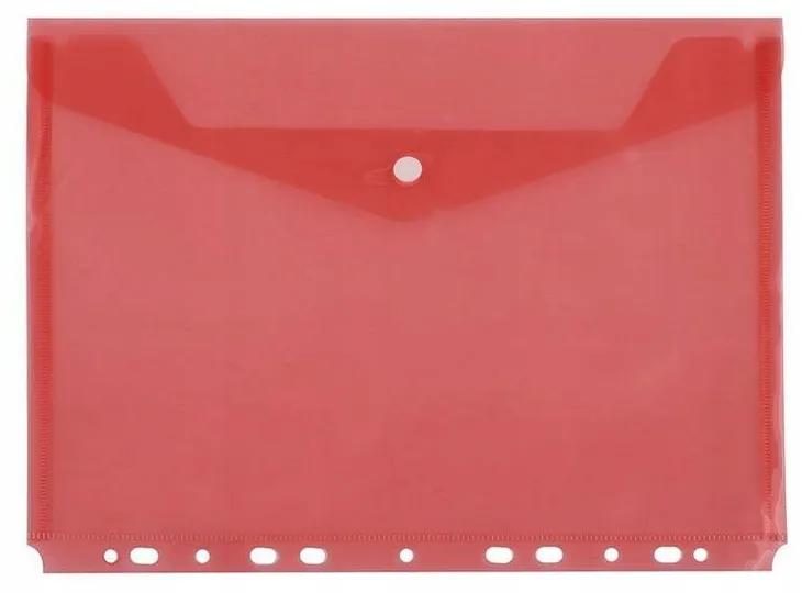 - klasyczna teczka kopertowa z uniwersalną perforacją umożliwiająca wpięcie do każdego typu segregatora- rozmiar A4- wykonana z folii PP- zamykana na zatrzask- transparentna czerwona