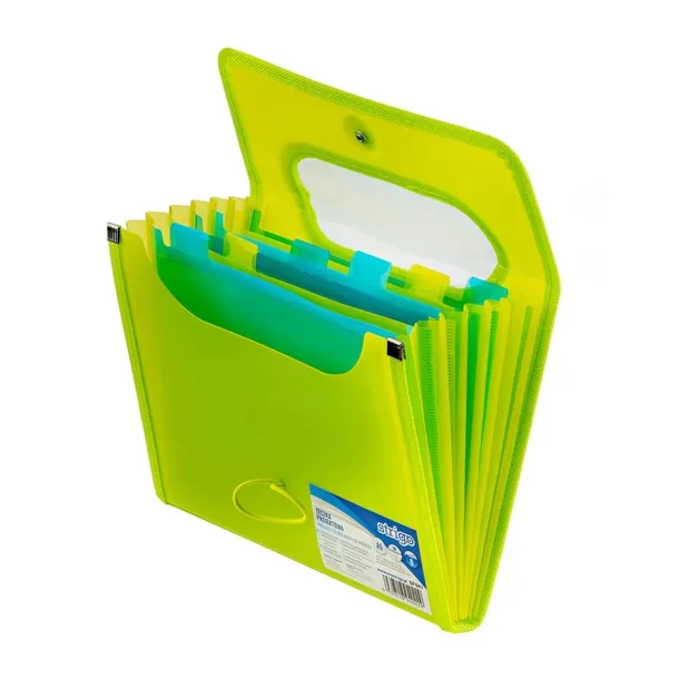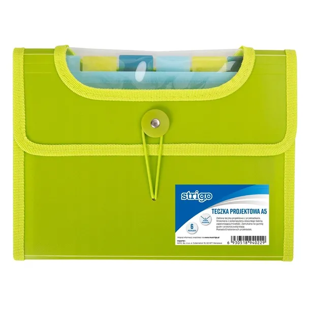 ✅Zielona teczka VFILE STRIGO w formacie A5 posiada 6 kolorowych przekładek z indeksem i miejsce na wsunięcie np.: karteczki z informacją.