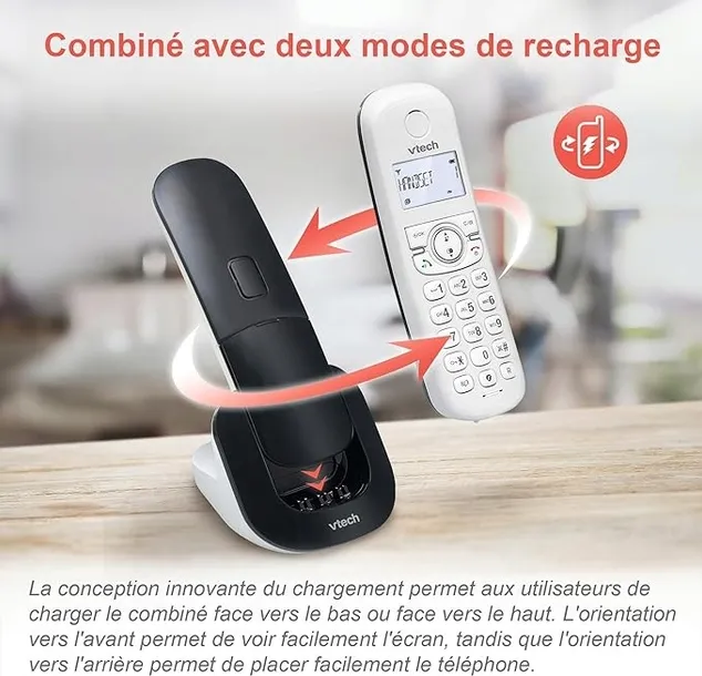 VTech CS1550 Telefon stacjonarny bez, seniorzy z podwójnym ładowaniem przewodem z funkcją sekretarki blokady połączeń identyfikacji dzwoniącego/połączenia oczekującego głośnomówiący podświetlany