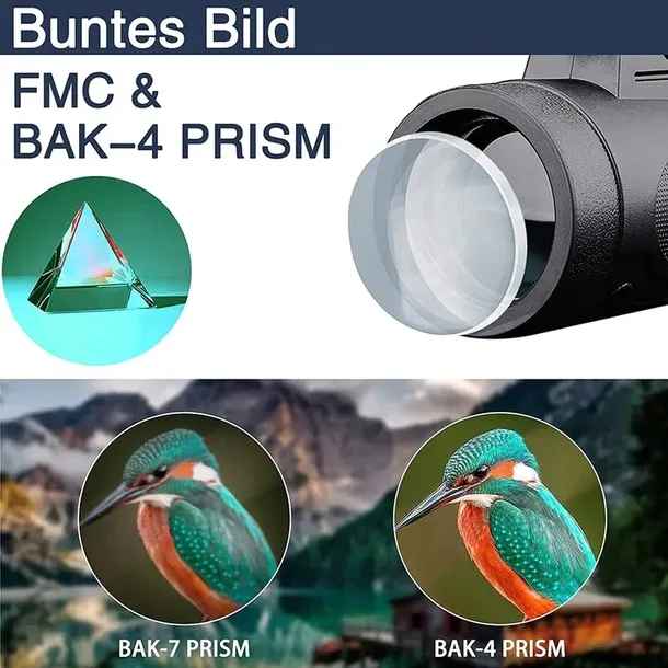 Pryzmaty BAK-4 monokularu pozwalają na mniejszą ilość światła błądzącego, mniejsze zniekształcenia kolorów, większą ostrość krawędzi, większą transmisję światła i wyższą jakość rozdzielczości. Wysoka transmisja światła na poziomie 99,6% sprawia, że pole widzenia jest jaśniejsze i wyraźniejsze. Pryzmaty BaK4 są znakiem rozpoznawczym wysokiej jakości teleskopu.