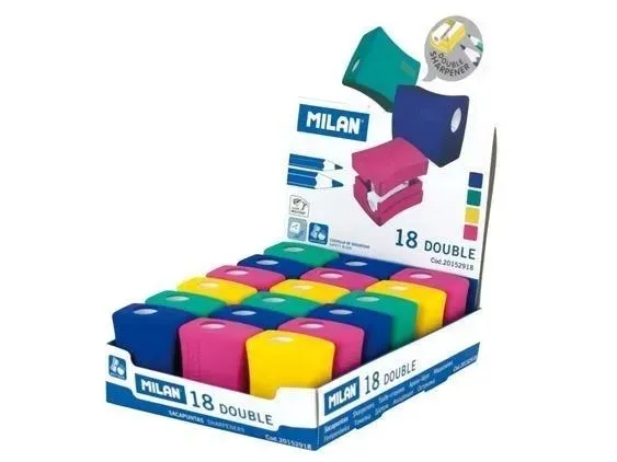 Temperówki dwustronne na cienkie i grube ołówki i kredki z pojemnikiem na ścinki. Mają ostre i wytrzymałe ostrza ze stali węglowej dzięki czemu idealnie nadają się do wszystkich rodzajów ołówków. Posiadają system bezpiecznych ostrzy, który zapobiega odłączeniu się ostrza od korpusu temperówki. Idealne do użytku szkolnego. Kolekcja ACID. Dostępne w 3 kolorach: żółtym, niebieskim i różowym. Oryginalny produkt stworzony przez własny dział badawczo-rozwojowy MILAN. Rozmiar temperówki: 4 x 3,3 x 2,3 cm.