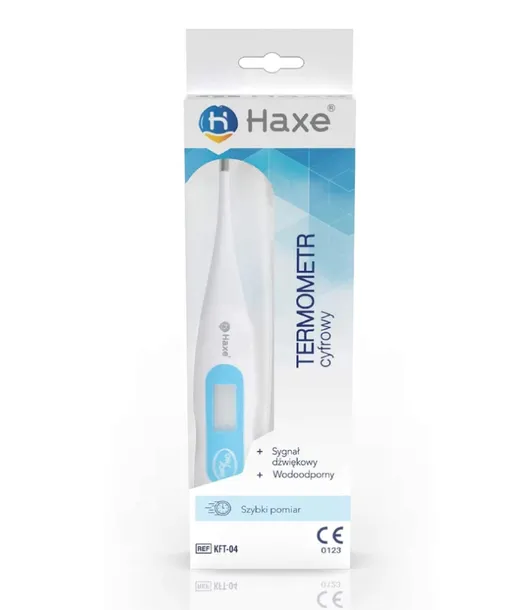Elektroniczny termometr KFT-04 gwarantuje precyzję pomiaru na poziomie ±0,1°C. Szybki, pomiar widoczny w ciągu 60 sekund umożliwia pomiar nawet u najbardziej niecierpliwych dzieci. Koniec pomiaru jest sygnalizowany poprzez sygnał dźwiękowy, co dadatkowo ułatwia użytkowanie urządzenia.