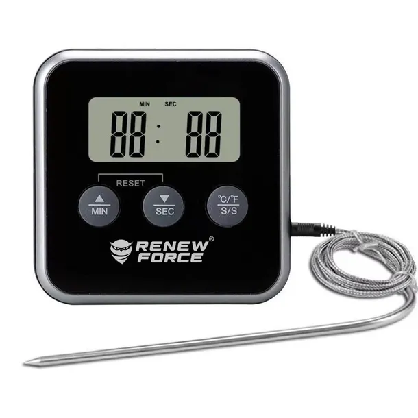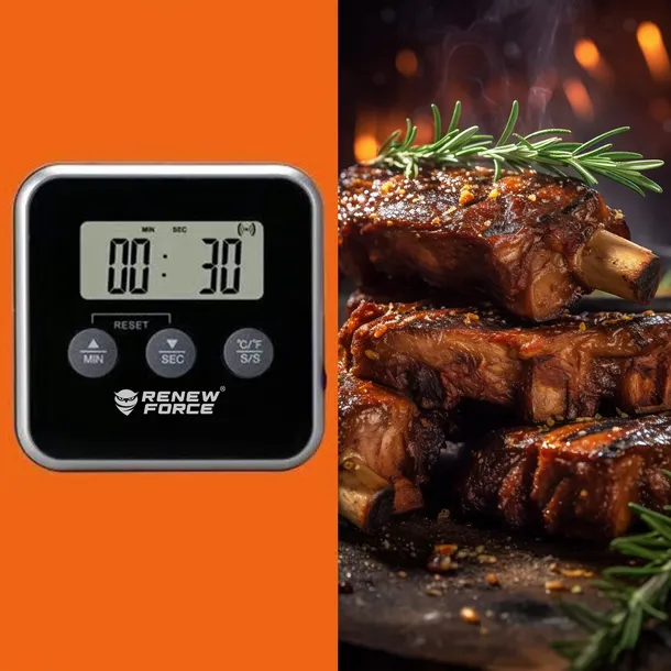 ✅Termometr kuchenny do mięsa i wędzarni – precyzyjne narzędzie do kontroli temperatury potraw aż do 250°C. Wyposażony w funkcję minutnika (do 100 minut) oraz czytelny wyświetlacz LCD. Idealny do pieczenia, grillowania i wędzenia. Działa na baterie – niezastąpiony w każdej kuchni. Precyzyjny pomiar temperatury i wygodny minutnik w jednym urządzeniu! Termometr z funkcją minutnika to idealne narzędzie dla miłośników gotowania, pieczenia oraz grillowania. Dzięki szerokiemu zakresowi pomiaru temperatury (od -50°C do +250°C) sprawdzi się zarówno przy przygotowywaniu mięs, wypieków, jak i gorących napojów. GŁÓWNE ZALETY: Szeroki zakres pomiaru temperatury: od -50° C do +250° C (-13° F do 482° F) Dokładność pomiaru: ±1°C – masz pewność precyzyjnych odczytów Funkcja minutnika – ustaw czas i nie martw się, że coś przypalisz Sygnał dźwiękowy po osiągnięciu ustawionej temperatury Magnes oraz rozkładana podstawka – wygodne mocowanie na lodówce lub postawienie na blacie Długi przewód sondy – aż 100 cm, dzięki czemu monitorowanie temperatury jest wygodne i bezpieczne Praktyczny przełącznik z tyłu obudowy: Clock/Timer, ON/OFF Zasilanie: 1 x bateria AAA (brak w zestawie) – niskie zużycie energii NIEZASTĄPIONY W KAŻDEJ KUCHNI Bez względu na to, czy jesteś profesjonalnym kucharzem, czy gotujesz dla rodziny, ten termometr ułatwi Ci kontrolę nad każdą potrawą. Koniec z niedogotowanym mięsem, przypalonym ciastem czy rozgotowanym makaronem – teraz gotowanie to czysta przyjemność! WYGODNE I INTUICYJNE UŻYTKOWANIE Dzięki magnesowi możesz przyczepić urządzenie do metalowych powierzchni, a rozkładana podstawka umożliwia postawienie go na stole czy blacie. Sonda przewodowa pozwala mierzyć temperaturę w czasie rzeczywistym, nie otwierając piekarnika czy grilla. RÓŻNE SPOSOBY MONTAŻU Termometr został zaprojektowany tak, aby zapewnić maksymalną wygodę użytkowania. Dzięki wbudowanemu magnesowi możesz bez problemu przymocować go do lodówki, piekarnika lub innych metalowych powierzchni. Rozkładana podstawka pozwala na stabilne ustawienie na blacie kuchennym, a otwór w obudowie umożliwia zawieszenie go na haczyku. Dzięki temu możesz umieścić urządzenie w najbardziej dogodnym miejscu, aby zawsze mieć je pod ręką. PRZEWODOWA SONDA – PRECYZJA W KAŻDYM DANIU Najważniejszym elementem termometru jest przewodowa sonda o długości 100 cm, odporna na wysokie temperatury. Dzięki niej możesz mierzyć temperaturę wewnątrz potrawy bez konieczności jej wyciągania z piekarnika czy grilla. Wystarczy wbić sondę w mięso, ciasto lub inną potrawę, ustawić żądaną temperaturę i czekać na sygnał dźwiękowy, który poinformuje o jej osiągnięciu. To doskonałe rozwiązanie, które eliminuje ryzyko przypalenia lub niedogotowania dań. ZESTAW ZAWIERA Cyfrowy termometr z funkcją minutnika Sondę pomiarową z przewodem ~100 cm Instrukcję obsługi w języku polskim Oryginalne opakowanie