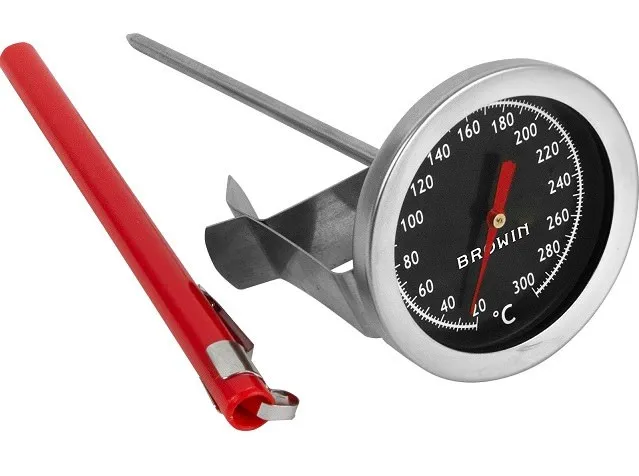 Termometr umożliwiający sprawdzanie temperatury potraw podczas pieczenia i gotowania, także w wysokich temperaturach. Solidna konstrukcja z nierdzewnej stali i wysoka jakość wykonania zapewniają długotrwałe, sprawne działanie urządzenia.